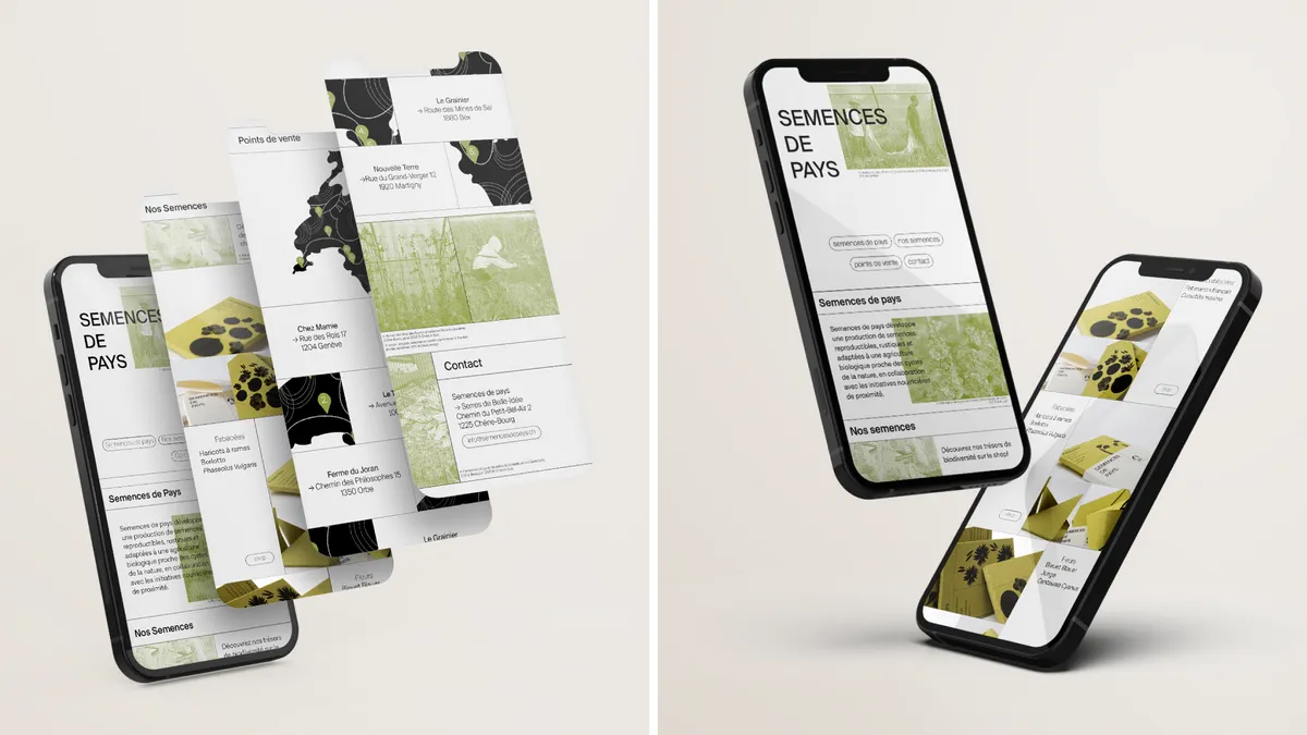 Semences de pays is my first-year final project. It's a Swiss association specializing in the sale of seeds through the collaboration of local farms. I had to reinvent the brand's visual identity via packagings, a typographic logo, a one-page mobile website and illustrations.